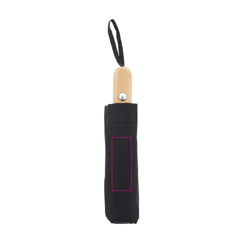 Paraplu gemaakt van R-PET met een Toppoint design handvat van echt hout. Dankzij de glasvezel delen van het frame is deze paraplu windproof en het opent met één druk op de knop. Het gemêleerde effect geeft deze paraplu een luxe uitstraling (zwart is volledig gekleurd).