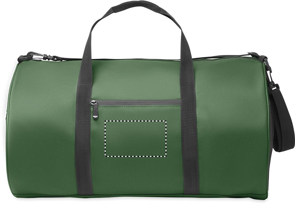 Sport- oder Reisetasche aus 600D RPET Polyester mit PU-Beschichtung. Fronttasche mit Reißverschluss. Innenfutter aus 210D RPET-Polyester. Seitenfach mit Reißverschluss, seitliches Netzfach. Reißverschlusstasche innen.