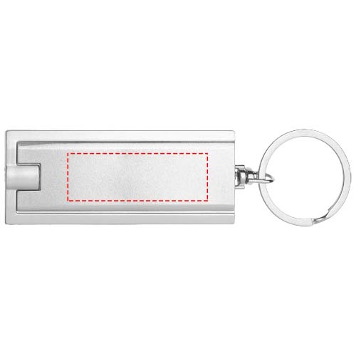 Schlüssellicht mit weißer LED und Drucktaste. Geteilter Schlüsselring aus Metall. Inkl. Batterien.