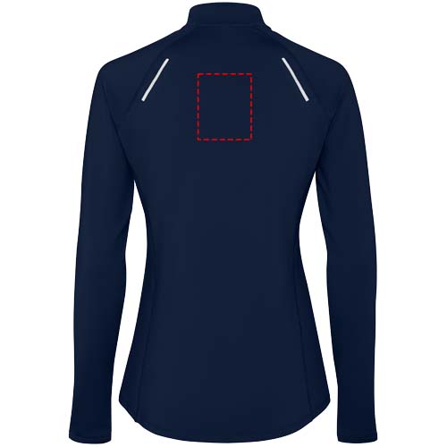 Langarm Funktions-Sweatshirt für Damen mit Raglanschnitt. Schlanke Passform. Kragen mit halbem Reißverschluss und reflektierenden Details. Verstärkte Nahtabdeckungen. Ärmelbündchen mit Daumenöffnung. Reflektierende Details am Rücken. Rückensaum etwas länger als der Frontsaum. Warmes gebürstetes Innenmaterial.