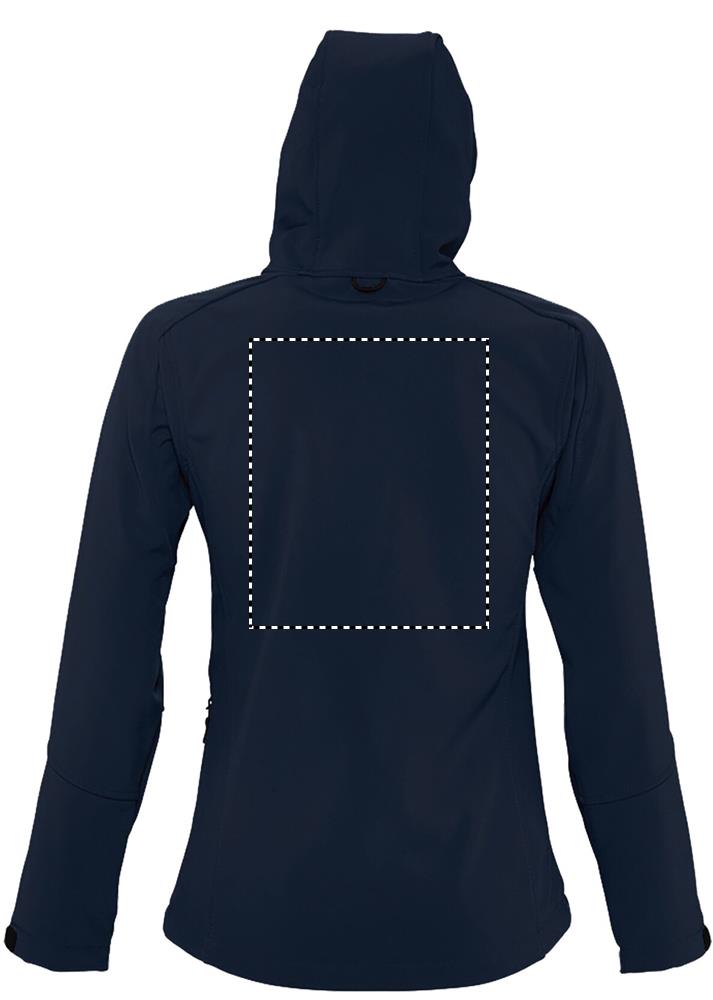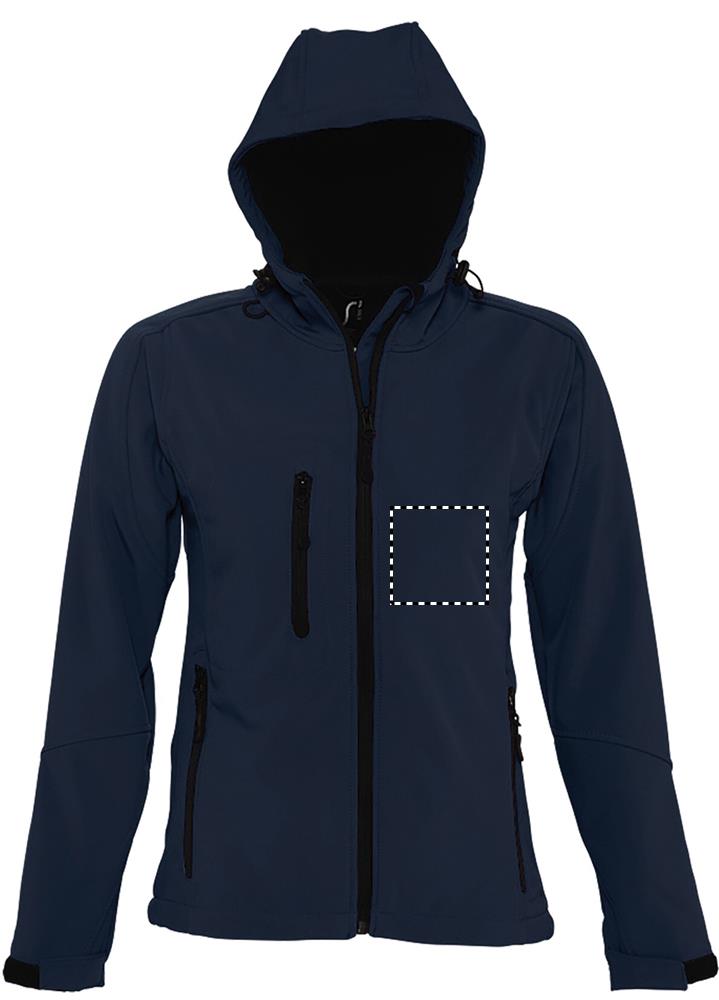 SOL'S REPLAY WOMEN, Damen-Softshelljacke mit Kapuze, 94 % Polyester – 6 % Elasthan, Fleecefutter: 100 % Polyester, 3 Lagen, 8000 mm wasserdichte und atmungsaktive Membran Softshell 340, 2 Seitentaschen mit Reißverschluss und 1 Brusttasche mit Reißverschluss, verstellbarer Kordelzug in der Taille, verstellbare Ärmelbündchen mit Klettverschluss, Kapuze mit Kordelzug. Informationen zur Passform finden Sie in der Größentabelle im Abschnitt „Produktdokumentation".
