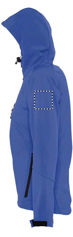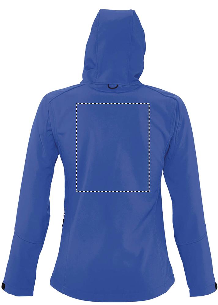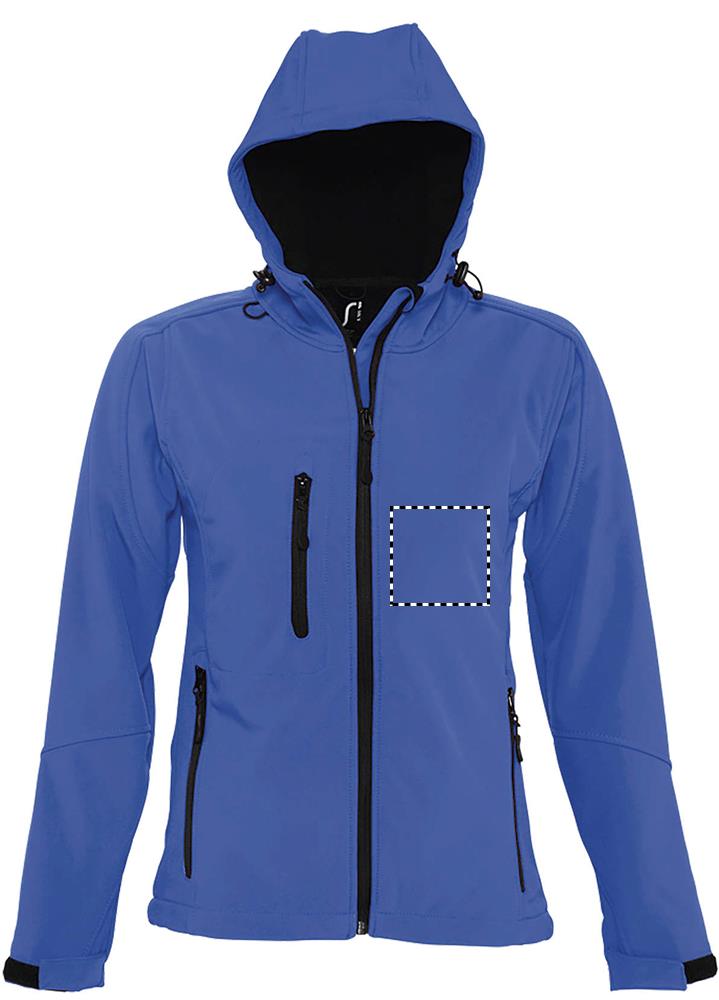 SOL'S REPLAY WOMEN, Damen-Softshelljacke mit Kapuze, 94 % Polyester – 6 % Elasthan, Fleecefutter: 100 % Polyester, 3 Lagen, 8000 mm wasserdichte und atmungsaktive Membran Softshell 340, 2 Seitentaschen mit Reißverschluss und 1 Brusttasche mit Reißverschluss, verstellbarer Kordelzug in der Taille, verstellbare Ärmelbündchen mit Klettverschluss, Kapuze mit Kordelzug. Informationen zur Passform finden Sie in der Größentabelle im Abschnitt „Produktdokumentation".