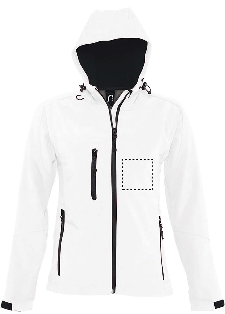 SOL'S REPLAY WOMEN, Damen-Softshelljacke mit Kapuze, 94 % Polyester – 6 % Elasthan, Fleecefutter: 100 % Polyester, 3 Lagen, 8000 mm wasserdichte und atmungsaktive Membran Softshell 340, 2 Seitentaschen mit Reißverschluss und 1 Brusttasche mit Reißverschluss, verstellbarer Kordelzug in der Taille, verstellbare Ärmelbündchen mit Klettverschluss, Kapuze mit Kordelzug. Informationen zur Passform finden Sie in der Größentabelle im Abschnitt „Produktdokumentation".