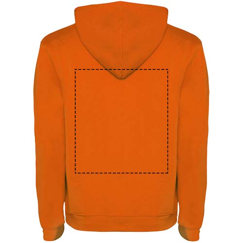 Kapuzenpullover mit doppeltem Stoff, verstellbarem Kordelzug in Kontrastfarbe, verstärkten und verdeckten Nähten am Kragen und Kängurutasche. Verfügbar in Zweifarbig und Uni. Elastischer 1×1-Rippstrick an Ärmeln und Bund. Abnehmbares Etikett. Das Modell ist 185 cm groß und trägt Größe M.