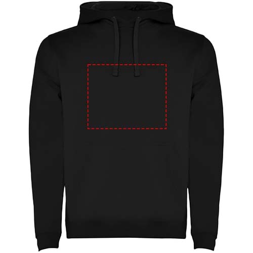 Kapuzenpullover mit doppeltem Stoff, verstellbarem Kordelzug in Kontrastfarbe, verstärkten und verdeckten Nähten am Kragen und Kängurutasche. Verfügbar in Zweifarbig und Uni. Elastischer 1×1-Rippstrick an Ärmeln und Bund. Abnehmbares Etikett. Das Modell ist 185 cm groß und trägt Größe M.