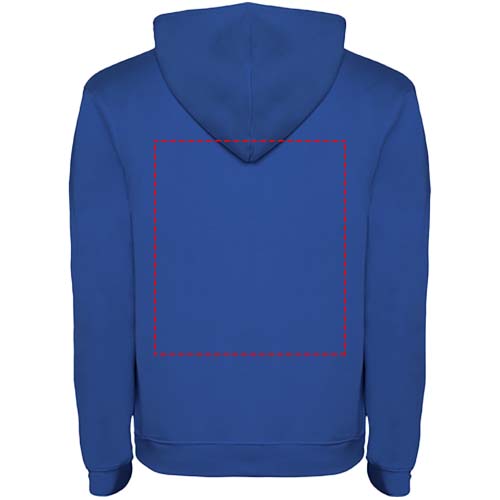 Kapuzenpullover mit doppeltem Stoff, verstellbarem Kordelzug in Kontrastfarbe, verstärkten und verdeckten Nähten am Kragen und Kängurutasche. Verfügbar in Zweifarbig und Uni. Elastischer 1×1-Rippstrick an Ärmeln und Bund. Abnehmbares Etikett. Das Modell ist 185 cm groß und trägt Größe M.
