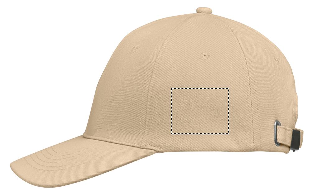 6 panel baseball cap in brushed cotton 260 gr/m² with stainless steel buckle. Size 7 1/4.