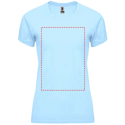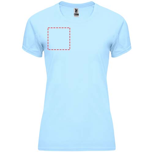 Technical short-sleeve raglan t-shirt for women. Crew neck with matching covered seams. Sleeve panels. Matching overlock in armhole and sleeve panel. CONTROL-DRY fabric. Removable label. Technical fabric. UV protection factor. The model is 173 cm and is wearing size S.