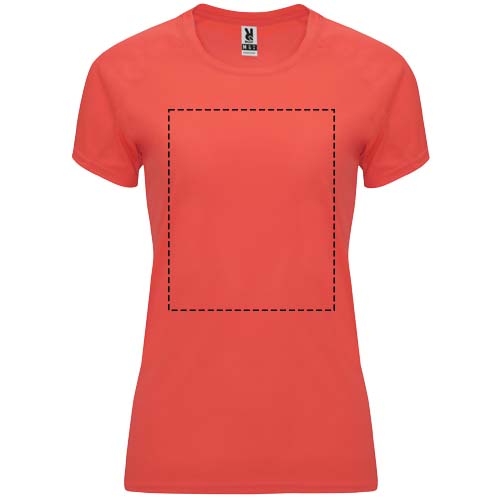 Technical short-sleeve raglan t-shirt for women. Crew neck with matching covered seams. Sleeve panels. Matching overlock in armhole and sleeve panel. CONTROL-DRY fabric. Removable label. Technical fabric. UV protection factor. The model is 173 cm and is wearing size S.