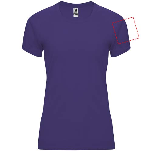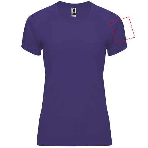 Technical short-sleeve raglan t-shirt for women. Crew neck with matching covered seams. Sleeve panels. Matching overlock in armhole and sleeve panel. CONTROL-DRY fabric. Removable label. Technical fabric. UV protection factor. The model is 173 cm and is wearing size S.