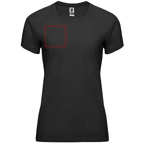 Technical short-sleeve raglan t-shirt for women. Crew neck with matching covered seams. Sleeve panels. Matching overlock in armhole and sleeve panel. CONTROL-DRY fabric. Removable label. Technical fabric. UV protection factor. The model is 173 cm and is wearing size S.