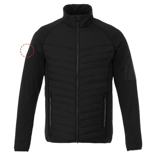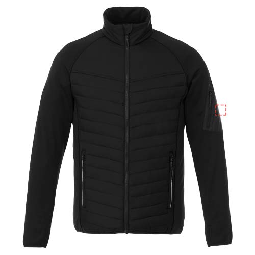 The Banff men's hybrid insulated jacket – a perfect fusion of style and performance. The inner stormflap ensures that the wind does not come through the jacket, and the dropped back hem adds an extra touch of coverage for added warmth. The elasticated binding in a contrasting colour adds a stylish accent while ensuring a secure fit. The jacket's dull cire 380T woven fabric has a water repellent and downproof finish, made of nylon (38 g/m2). The contrast fabric is an interlock knit made of polyester and elastane (245 g/m2), adding flexibility and comfort. The fake down insulation of polyester provides lightweight warmth, perfect for chilly days.