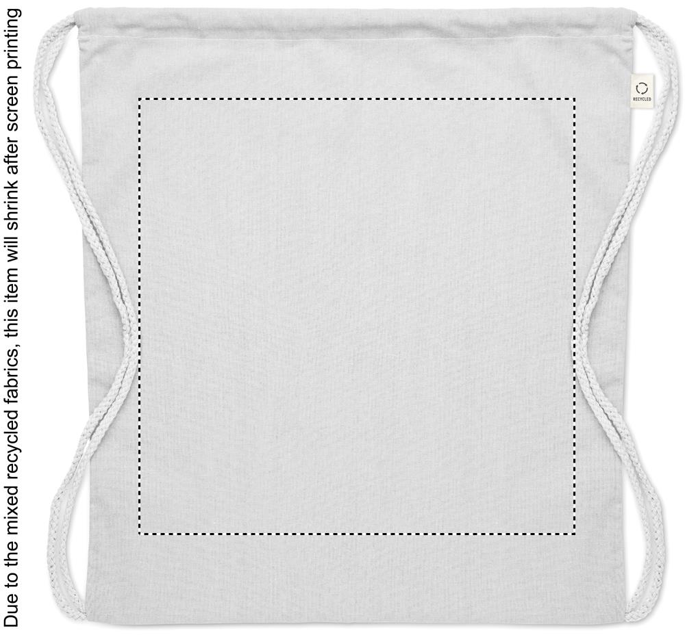 Drawstring bag in recycled pre-consumer cotton (70 %) and RPET (30%) 140 gr/m². This item can shrink after printing.