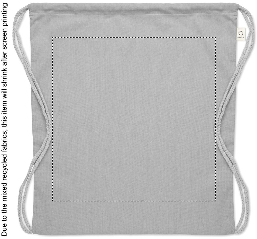 Drawstring bag in recycled pre-consumer cotton (70 %) and RPET (30%) 140 gr/m². This item can shrink after printing.