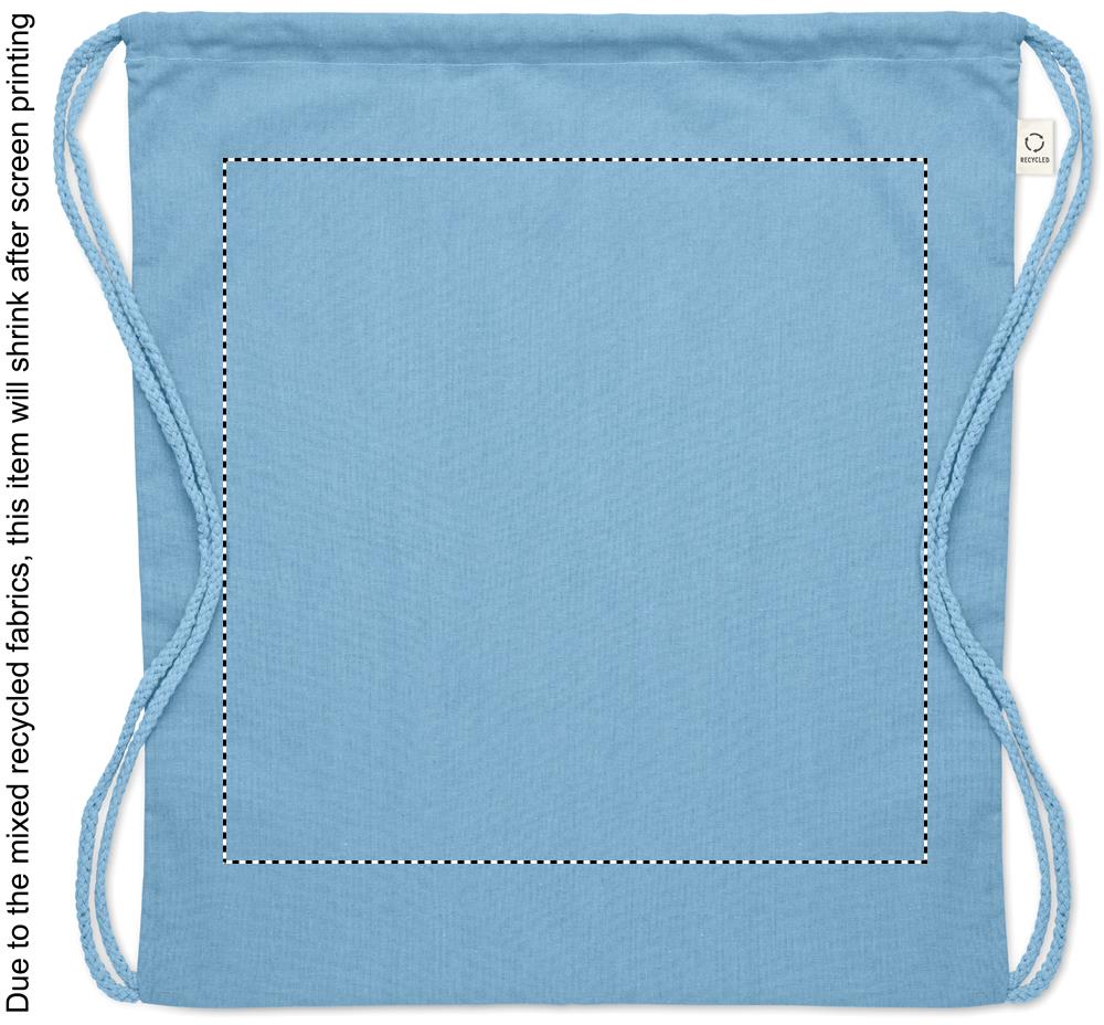 Drawstring bag in recycled pre-consumer cotton (70 %) and RPET (30%) 140 gr/m². This item can shrink after printing.