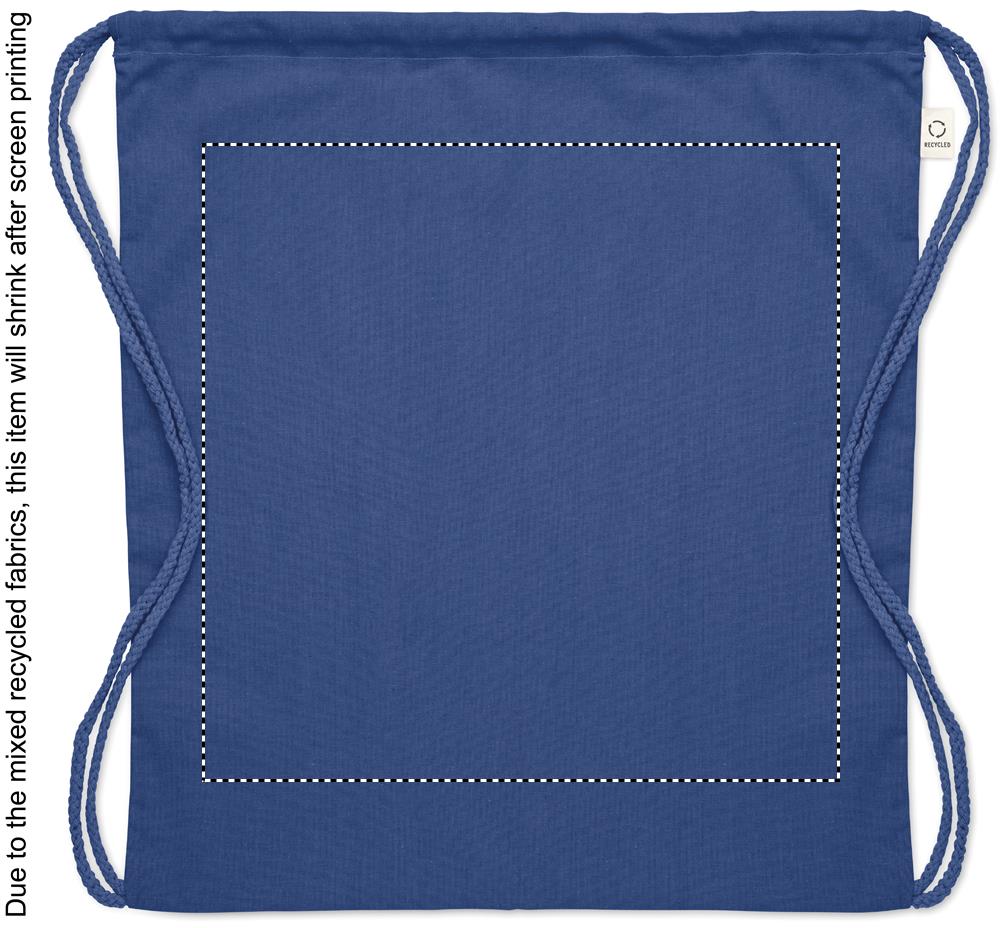 Drawstring bag in recycled pre-consumer cotton (70 %) and RPET (30%) 140 gr/m². This item can shrink after printing.