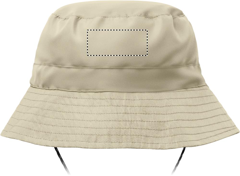 Water repellent fisherman hat made of polyester, includes self material pouch with ABS carabiner. 64 gr/m².