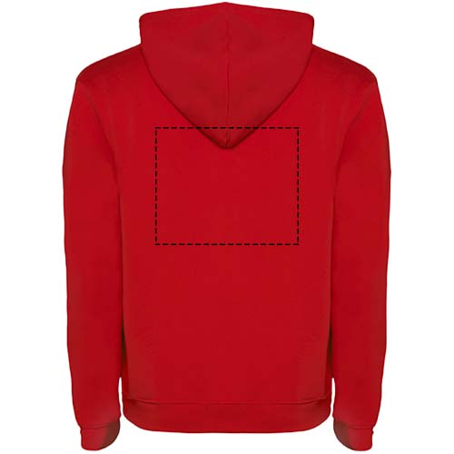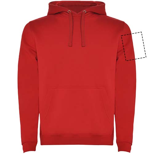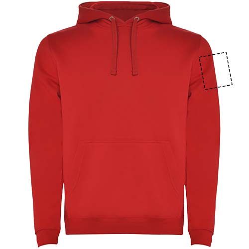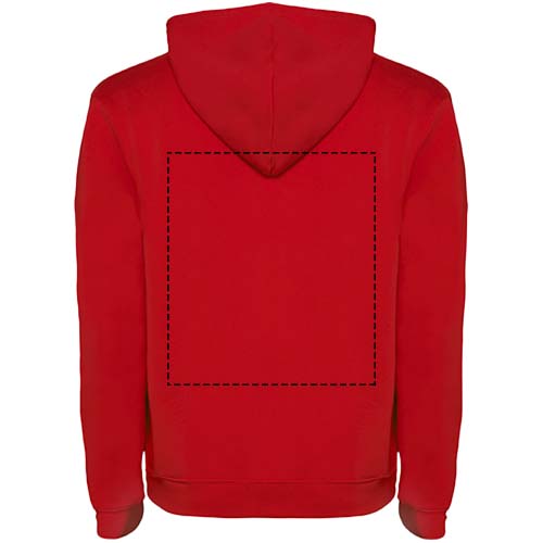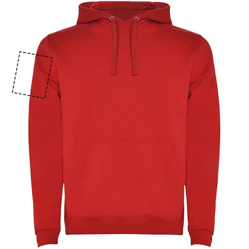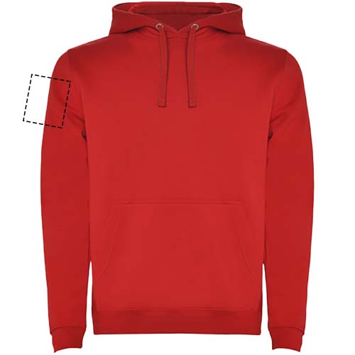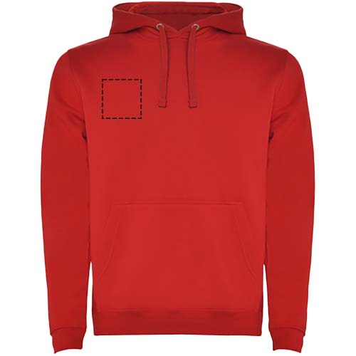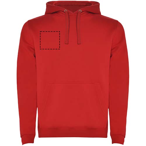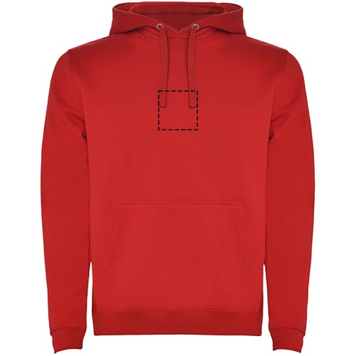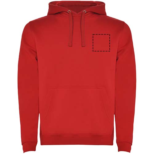 Hoodie with double fabric, adjustable drawcord, reinforced covered seams in collar and kangaroo style pocket. Available in uni-colours and two-tone colours. 1x1 elastane rib in cuffs and waistband. Removable label. The model is 185 cm and is wearing size M.