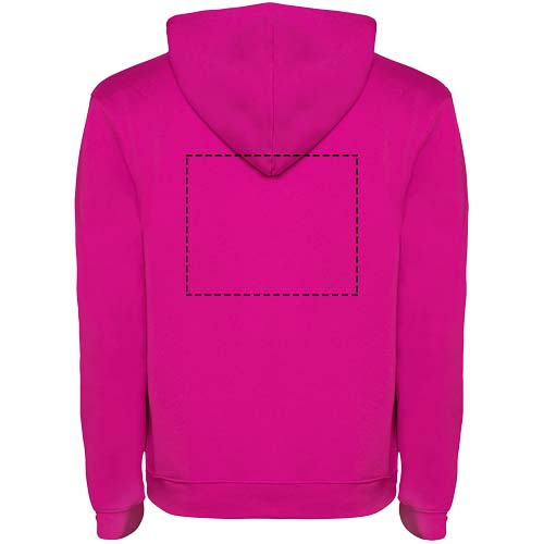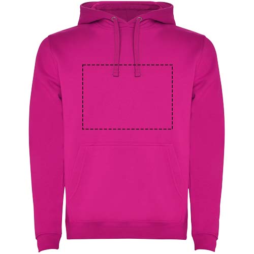 Hoodie with double fabric, adjustable drawcord, reinforced covered seams in collar and kangaroo style pocket. Available in uni-colours and two-tone colours. 1x1 elastane rib in cuffs and waistband. Removable label. The model is 185 cm and is wearing size M.