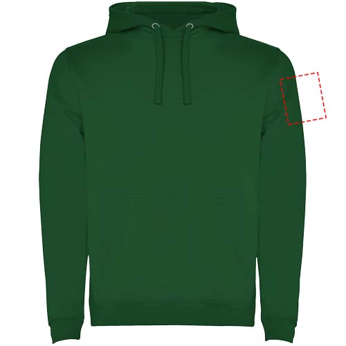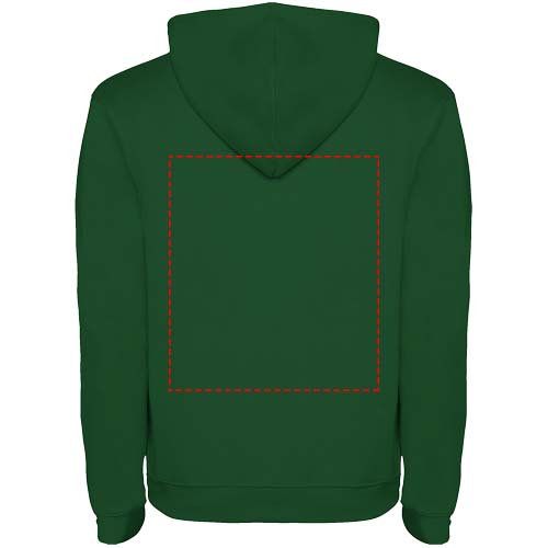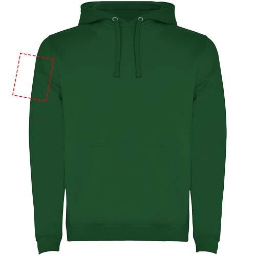 Hoodie with double fabric, adjustable drawcord, reinforced covered seams in collar and kangaroo style pocket. Available in uni-colours and two-tone colours. 1x1 elastane rib in cuffs and waistband. Removable label. The model is 185 cm and is wearing size M.