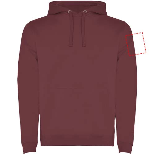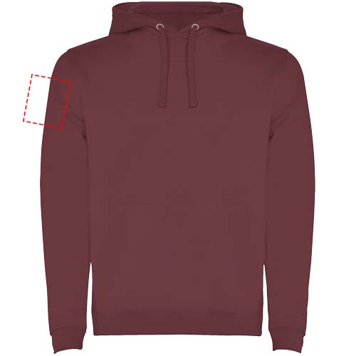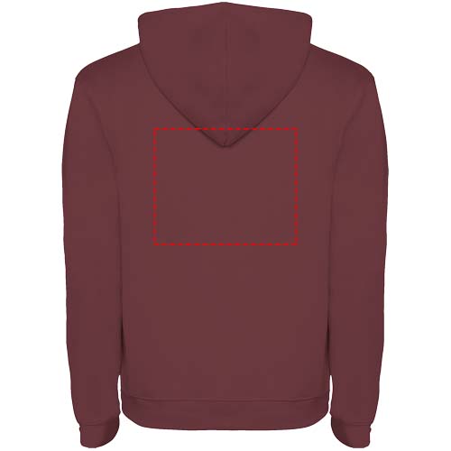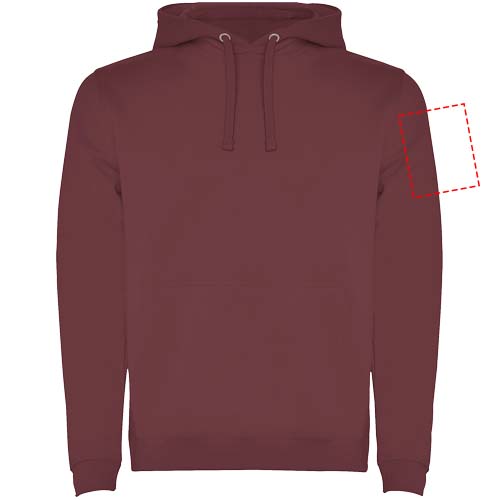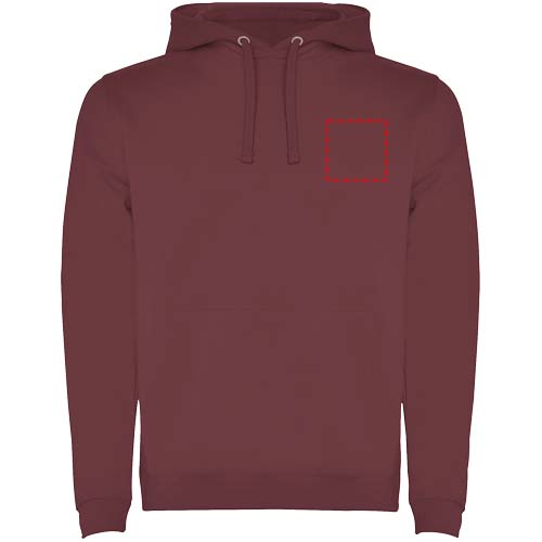 Hoodie with double fabric, adjustable drawcord, reinforced covered seams in collar and kangaroo style pocket. Available in uni-colours and two-tone colours. 1x1 elastane rib in cuffs and waistband. Removable label. The model is 185 cm and is wearing size M.